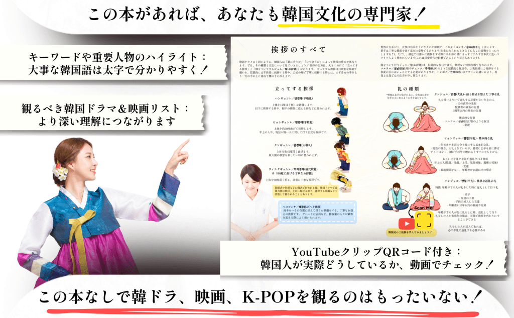 この本なしで韓ドラ、映画、K-POPを観るのはもったいない! 文化的な背景を理解していないと、その中に込められたユーモアや意味を見逃してしまうかもしれません。(「あれ?周りはみんな笑ってるのに、自分だけポカン…」そんな経験ありませんか?)