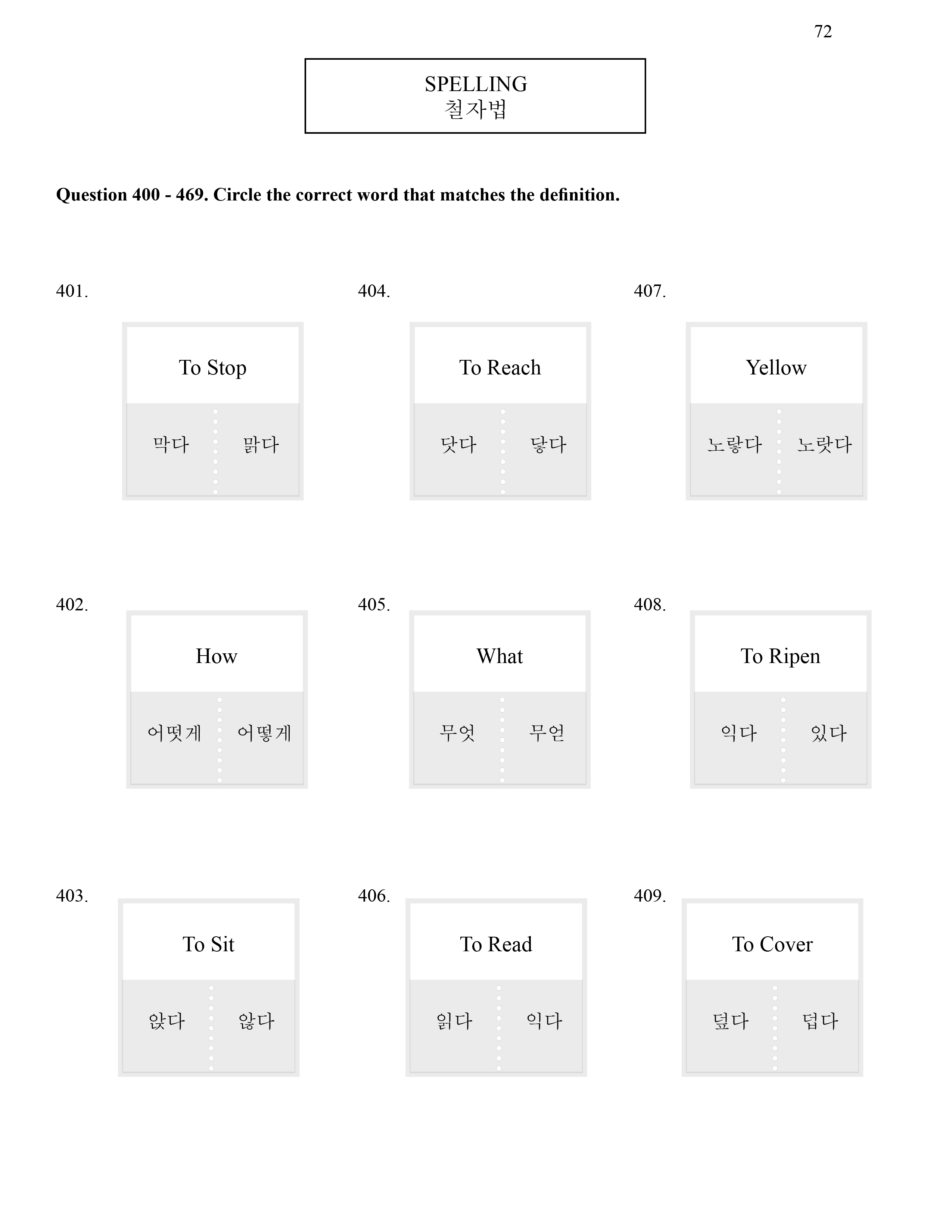 LET’S STUDY KOREAN : Complete Practice Work Book for Grammar, Spelling, Vocabulary and Reading Comprehension With Over 600 Questions