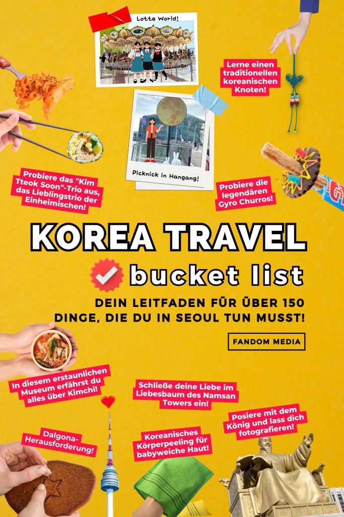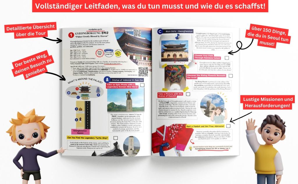 Seouls pulsierendes Äußeres ist nur die Spitze des Eisbergs, aber keine Sorge – wir sind nicht dein typischer Reiseführer, der dir nur sagt, wohin du gehen sollst. Wir sind deine Seoul-erfahrenen Begleiter, die die größten Geheimnisse der Stadt lüften, indem sie mehr als 150 “Must Do”-Aktivitäten und Herausforderungen aus über 80 Orten auswählen, die nicht nur deinen Reiseplan füllen, sondern dich auch wie ein Einheimischer in den Herzschlag Seouls eintauchen lassen!