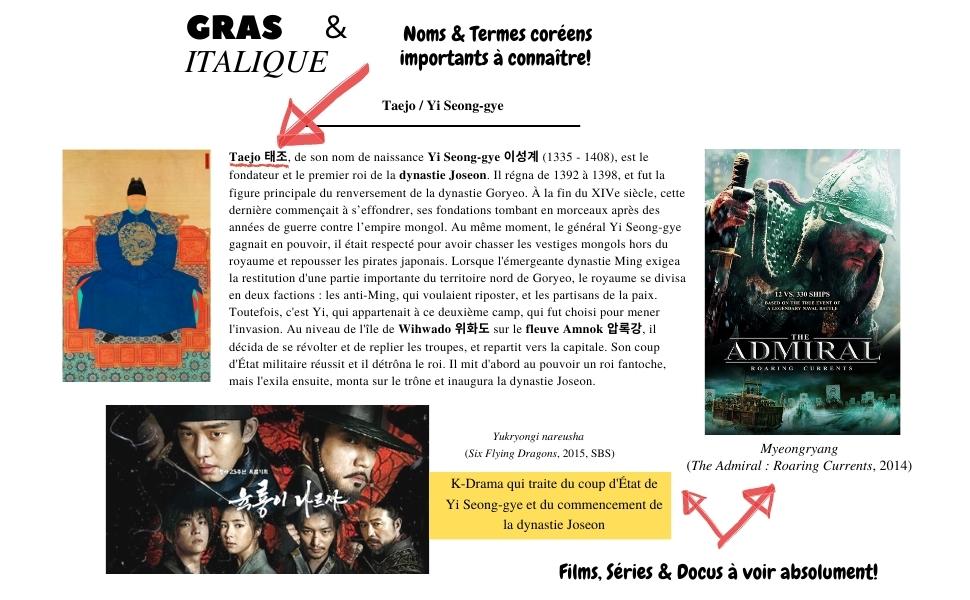 – Termes et Personnes À Connaître : Les termes coréens importants sont écrits en gras et en italique pour t’aider à mieux les retenir!
