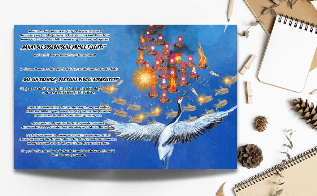 ● Eine Pflichtlektüre für Geschichtsliebhaber weltweit: Ob du Koreaner*in bist oder nicht, die Geschichte von Admiral Yi Sun-sin bietet universelle Lektionen über Führungsqualitäten, Beharrlichkeit und Einfallsreichtum, die Menschen auf der ganzen Welt inspirieren.