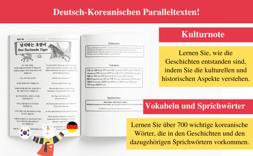 Sie suchen nach einer einfachen und unterhaltsamen Möglichkeit, Koreanisch zu lernen? Lernen Sie Koreanisch mit klassischen Kurzgeschichten, mit herunterladbaren Audiodateien, die von einem professionellen koreanischen Sprecher aufgenommen wurden und deutsch-koreanischen Paralleltexten!