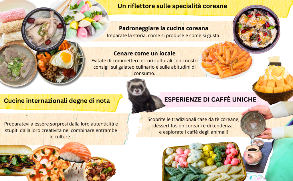 – Padroneggiare la cucina coreana: Imparate la storia, la varietà e la preparazione dei piatti coreani, in modo da sapere cosa ordinare e assaporare ogni boccone.
