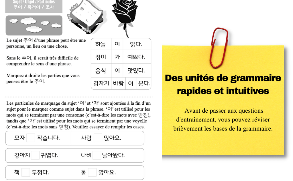 Des unités de grammaire rapides et intuitives – Avant de passer aux questions d’entraînement, vous pouvez réviser brièvement les bases de la grammaire.