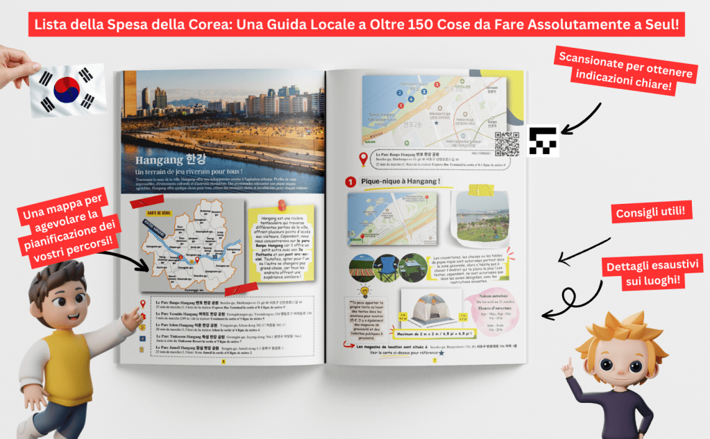 L’aspetto esteriore di Seul è solo la punta dell’iceberg, ma non ti preoccupare: non siamo la solita guida turistica che si limita a dirti dove andare; siamo i tuoi compagni di viaggio esperti di Seul, che ti sveleranno i segreti più straordinari della città mentre selezioniamo più di 150 attività e sfide imperdibili da oltre 80 luoghi che non solo riempiranno il tuo itinerario, ma ti permetteranno anche di immergerti nel cuore pulsante di Seul come farebbe un vero abitante del posto!