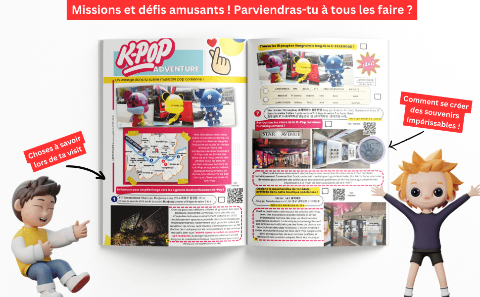Tu es un fanatique de K-Pop ? Nous t’aiderons à faire un pèlerinage au siège des quatre grandes sociétés de divertissement, dans des cafés douillets au charme inspiré par les artistes et dans des boutiques de produits dérivés. Prêt à rencontrer des stars virtuelles de la K-Pop ? Nous avons vos coordonnées en or ici même ! Attrape les 17 poupées Gangnam dédiées aux stars de la K-Pop !