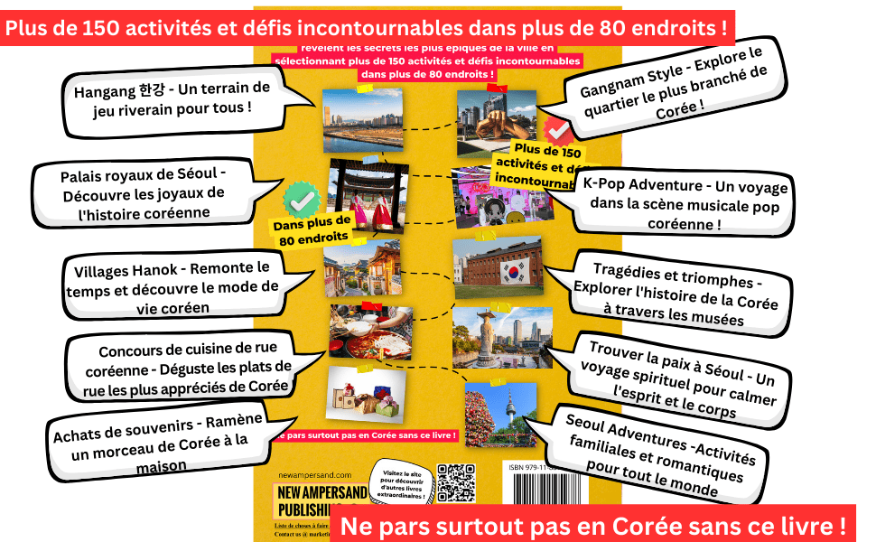 Ce livre est ton passeport pour vivre Séoul comme un véritable initié – ta clé pour débloquer un voyage inoubliable ! Ne pars surtout pas en Corée sans ce livre !