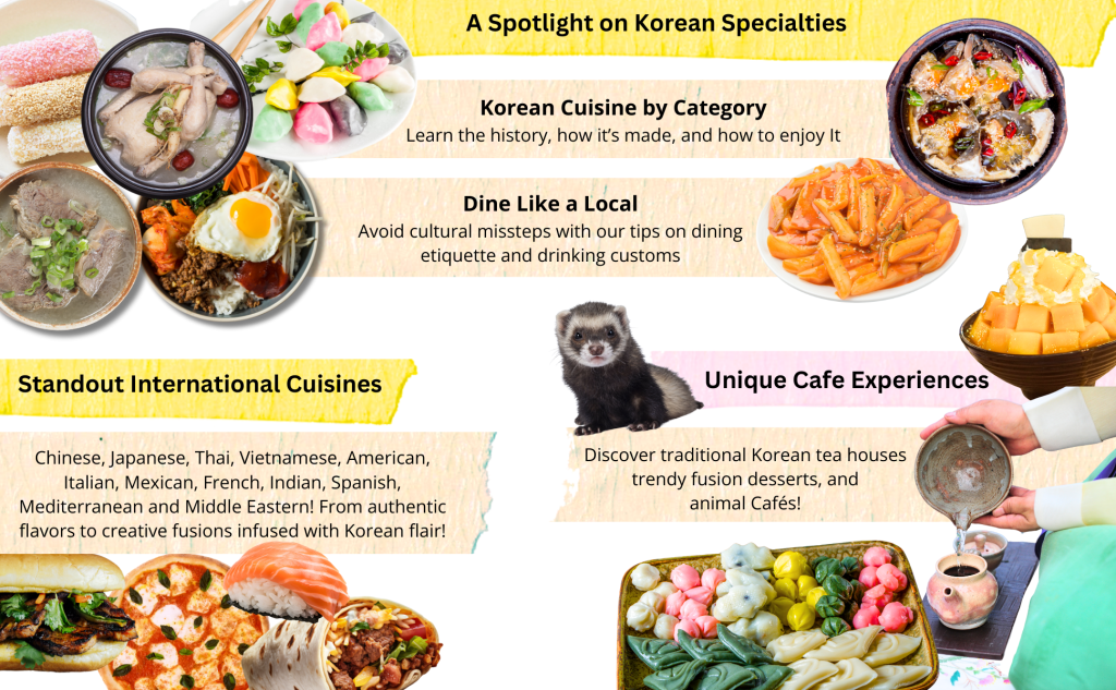 – Master Korean Cuisine: Learn the history, variety, and preparation of Korean dishes, so you know what to order and savor every bite.