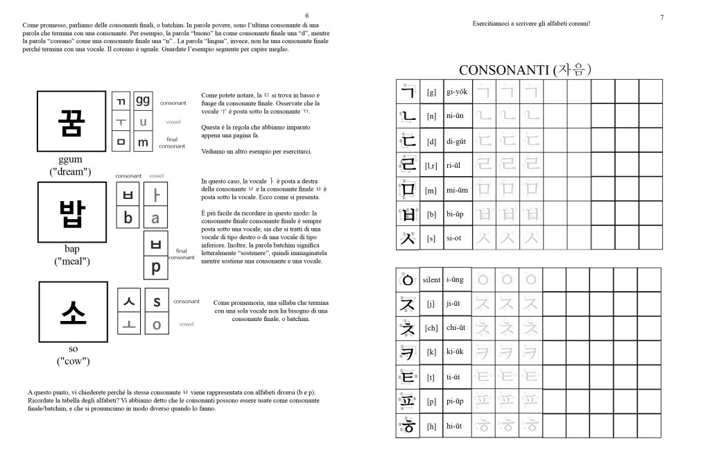 Impara a scrivere l’Hangul – La pratica rende perfetti! Una sezione dedicata alla scrittura dell’alfabeto coreano, l’Hangul.